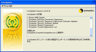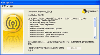 ウイルス定義ファイル等を最新の状態にするために、LiveUpdateは必ず実行する必要があります。