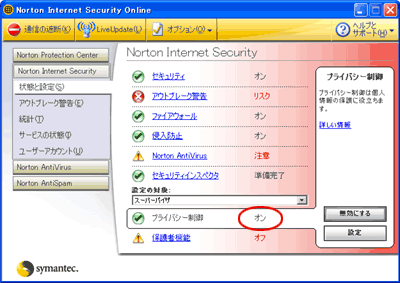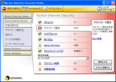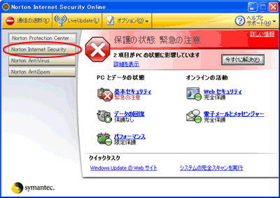 「Norton Internet Security Online」のLiveUpdateを実行します。